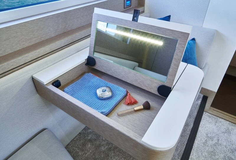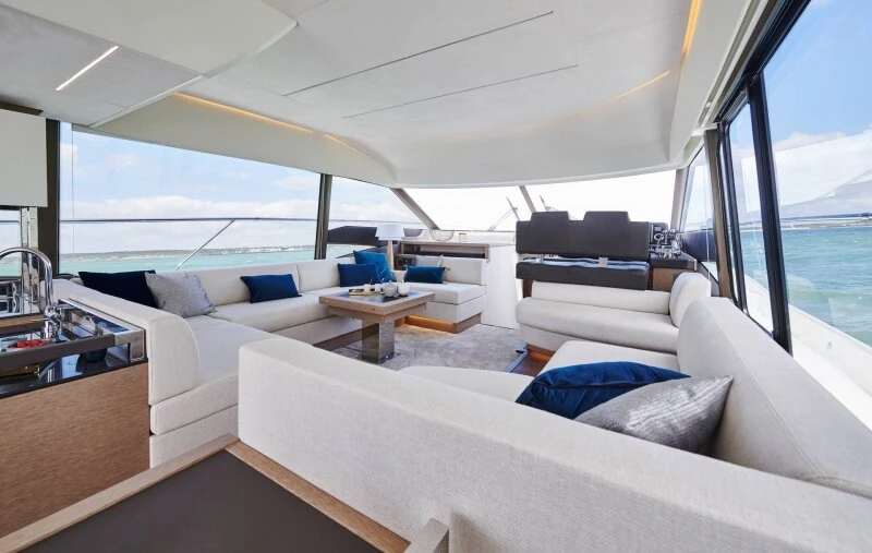 The Prestige 590 is a balanced, elegant 60-feet luxury yacht known for its dynamic profile and thoughtfully appointed interiors. Large windows create a bright, panoramic saloon that stays connected to outdoor spaces, enhancing life at anchor and during coastal passages. The yacht’s architecture offers smooth circulation, comfortable seating, and functional storage, making longer trips feel natural and unhurried. Details are executed with care, from helm ergonomics to social layouts, so owners and guests can relax into the rhythm of the sea. If you value a luxuary disign and timeless lines, the Prestige 590 is a compelling choice. Request a brochure, configuration advice, and a private viewing slot.
